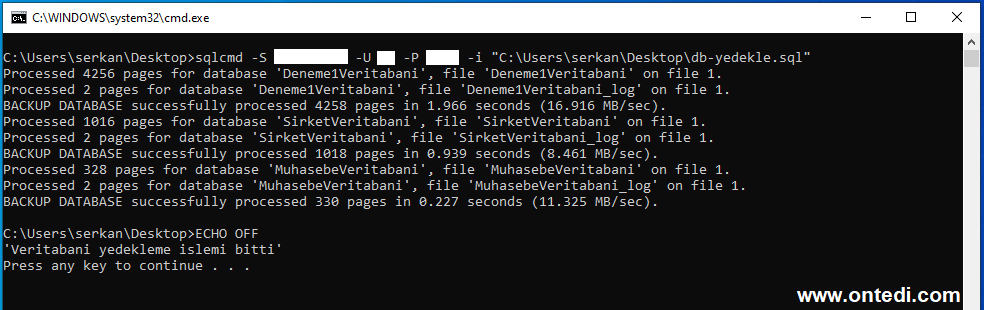 Buraya kadar her şey iyi gitti. Sıra geldi bat dosyası ile bu scripti "SQL Server Management Studio" tarzı bir arayüze girmeden yapmaya çalışalım.